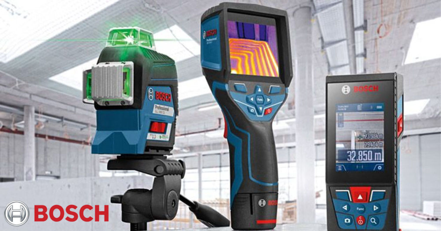 Благодаря активному развитию, Bosch стала осваивать рынок измерительной техники и инструментов. В продажу стали поступать строительные уровни, рулетки, линейки. Повсеместное внедрение микрочипов, дисплеев и компактных лазерных излучателей лишь подстегнуло немецкую компанию. В ассортименте появились оптические, ротационные и лазерные нивелиры, дальномеры, измерители влажности и температуры, видеоскопы, тепловизоры и многое другое.